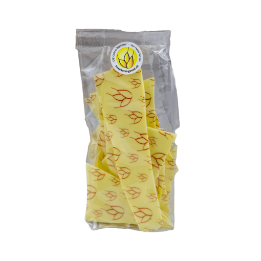 Couverture Alba 36% weiss (Kakao, Maltit, Kakaobutter, VollmilchpulverMagermilchpulver, Vanille-Extrakt*Madagaskar, Sojalecithine)