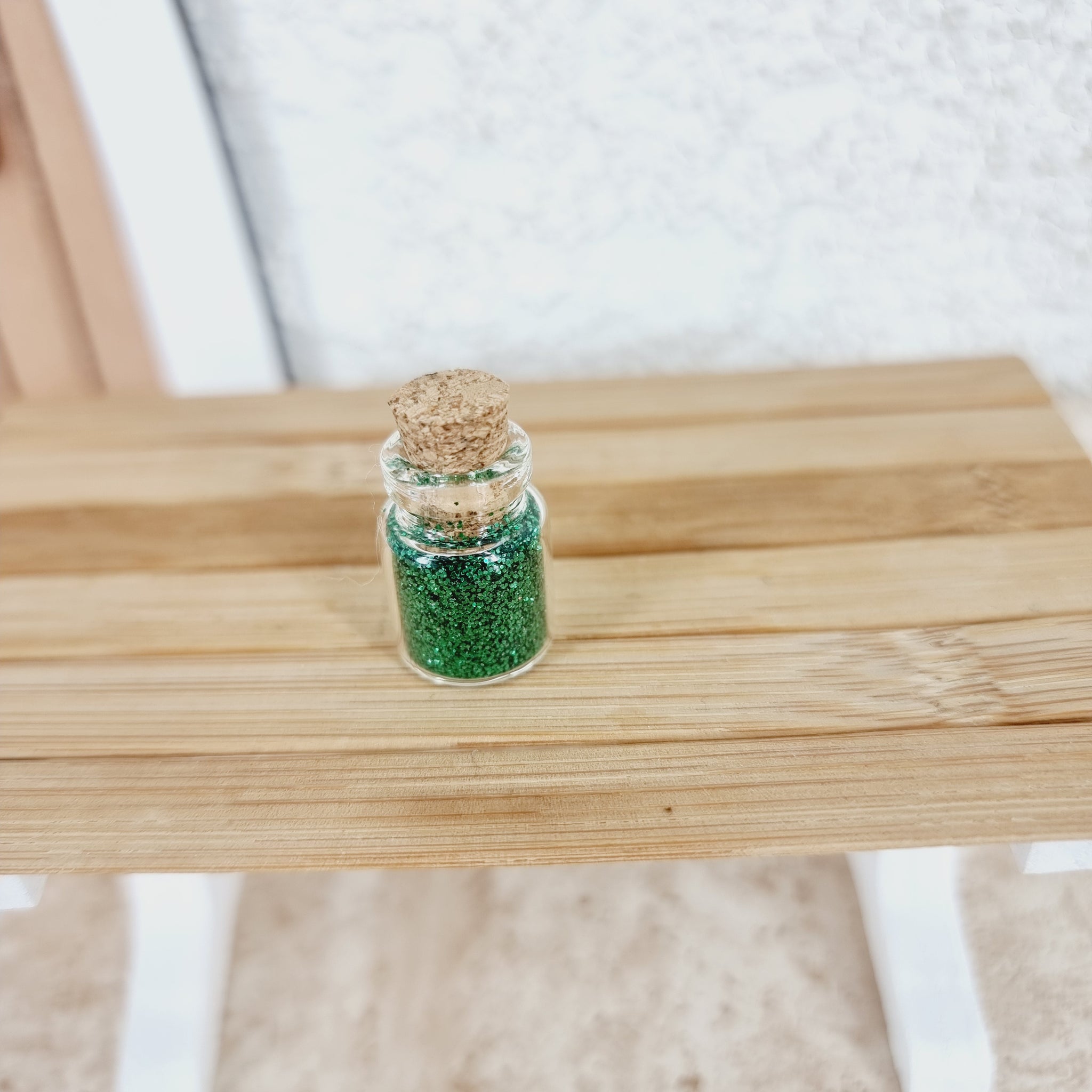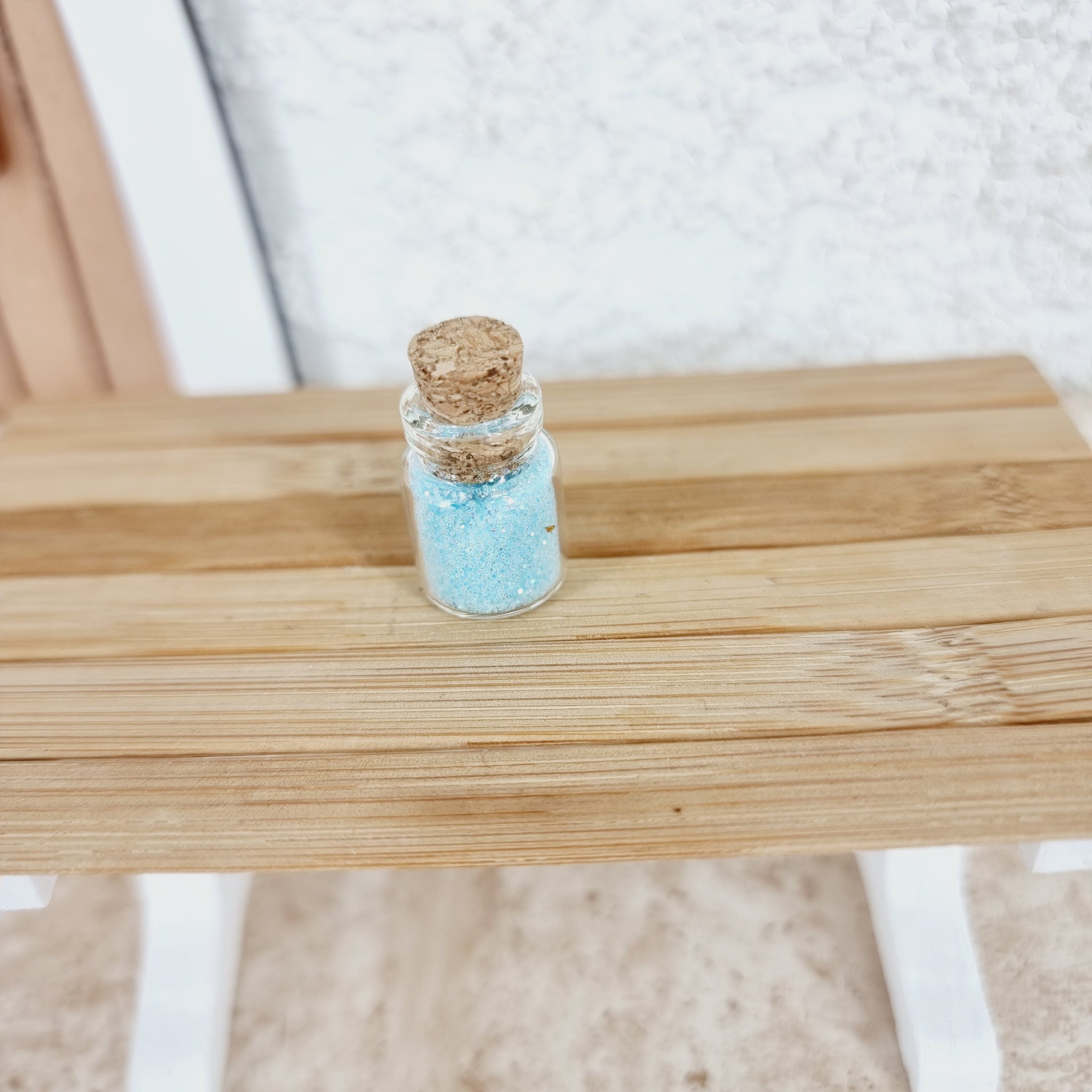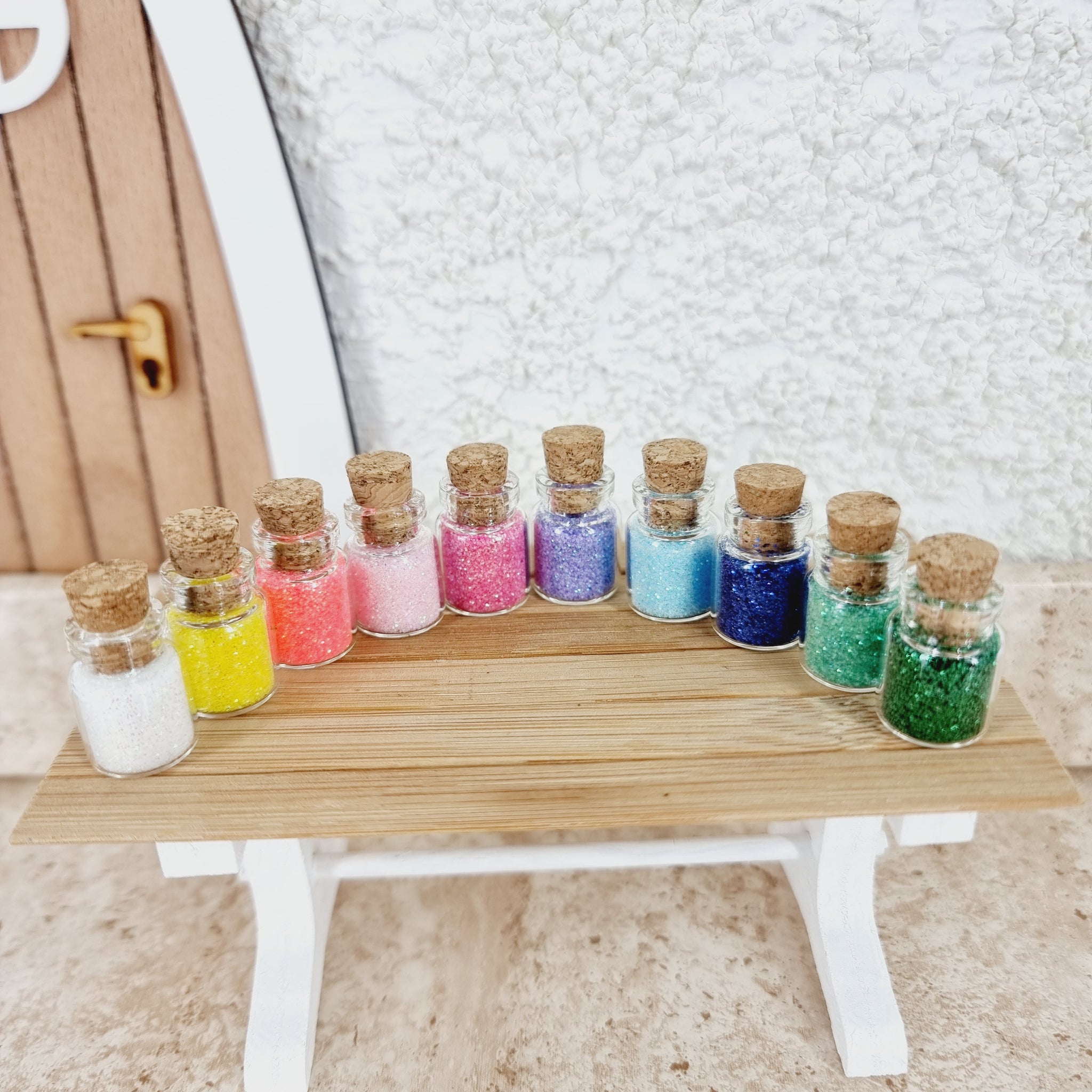 •  1 Mini Glasfläschchen mit Wichtelglitzers, ca. 2,5 x 1 cm gross, Korkzapfen lässt sich öffnen (in 10 verschiedenen Farben erhältlich